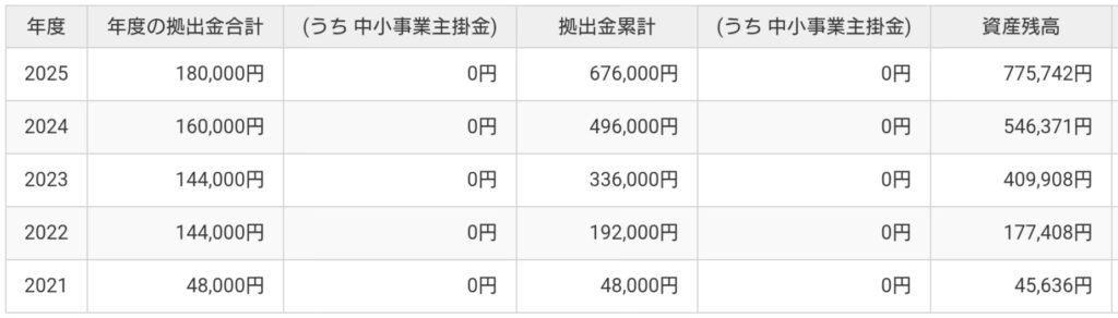 iDeCo 年度別の拠出金合計