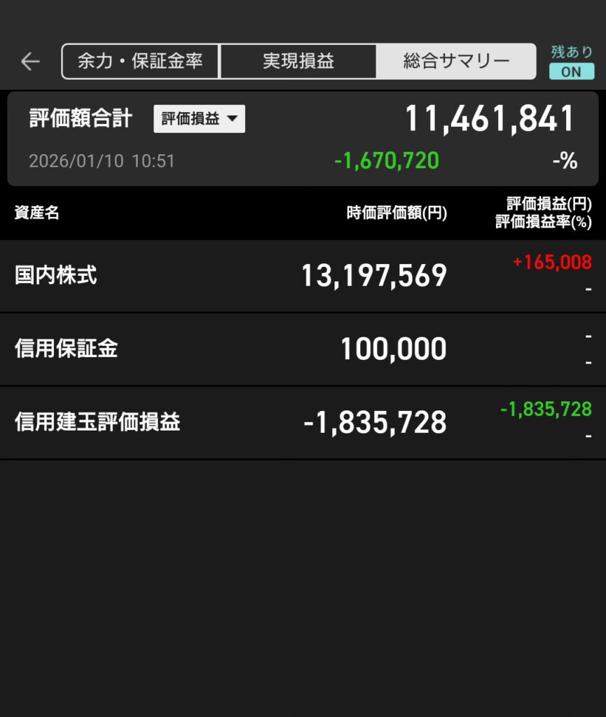 現物・信用評価額合計 11,461,841円