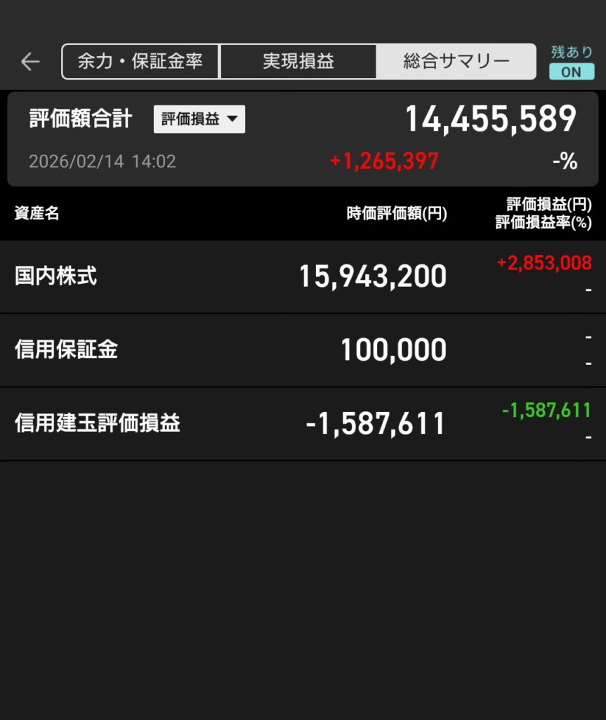 現物・信用評価額合計 14,455,589円