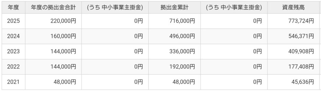iDeCo 年度別の拠出金合計